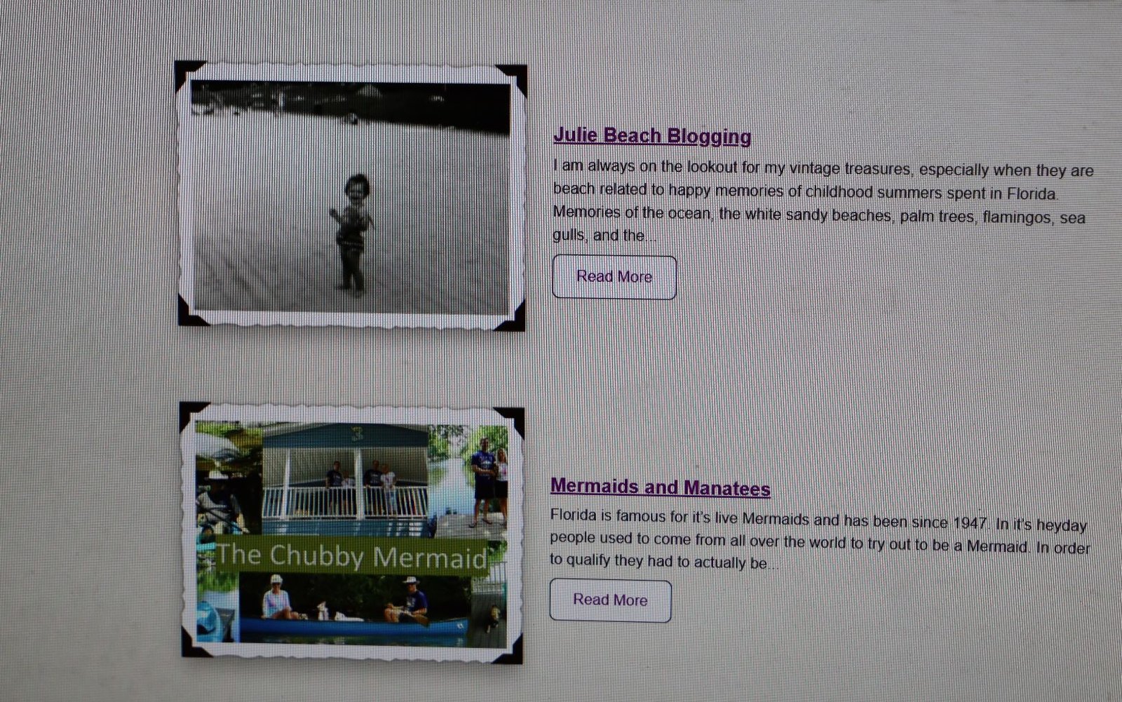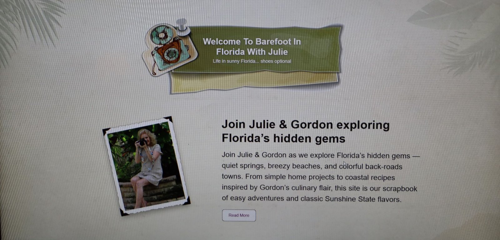 I decided to create this new website because our live site, www.BarefootInFloridaWithJulie.com, was getting a bit too big.