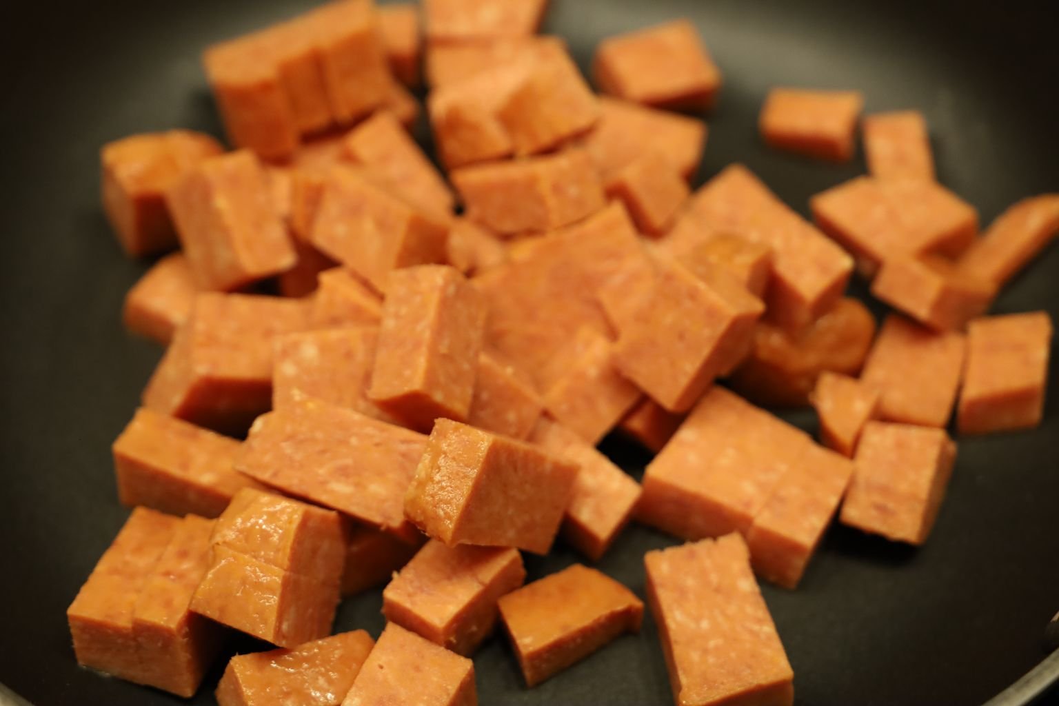 In a Medium Pan on a Medium Heat, Place Your SPAM that you have Cut into Chunks