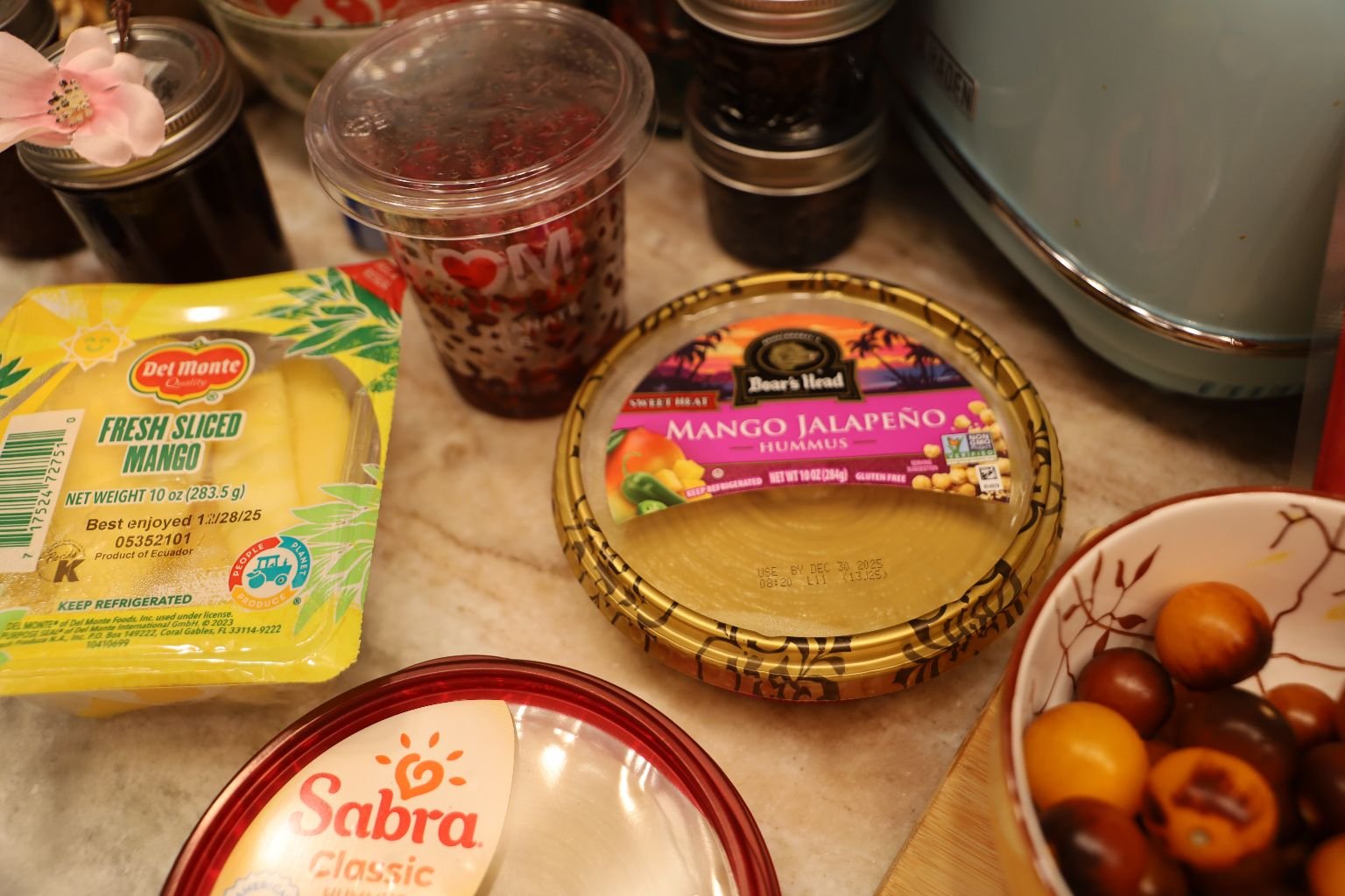 Hummus, I used Plain and Mango/Jalapeno